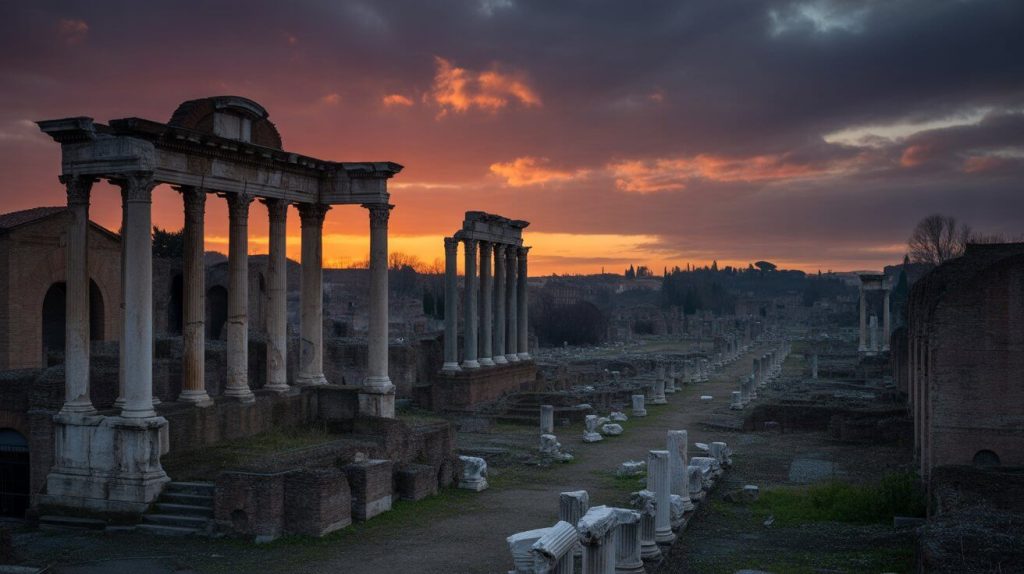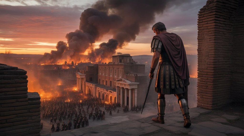 Imagem feita por IA representando a queda do Império Romano do Ocidente