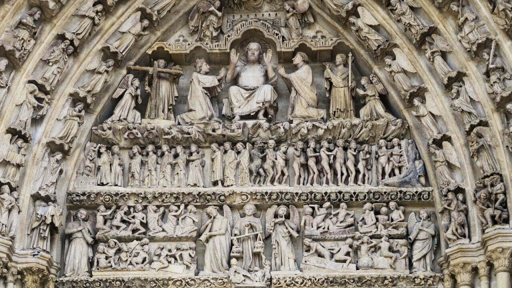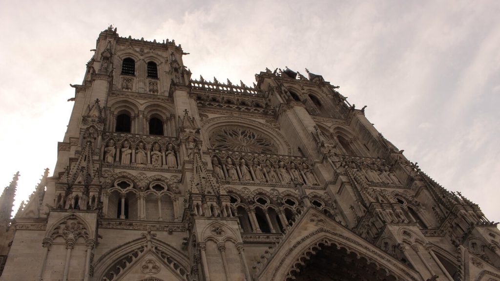 Catedral de Amiens — Exemplo de “alta escolástica” em pedra, com sua fachada organizada como um tratado filosófico em três níveis.